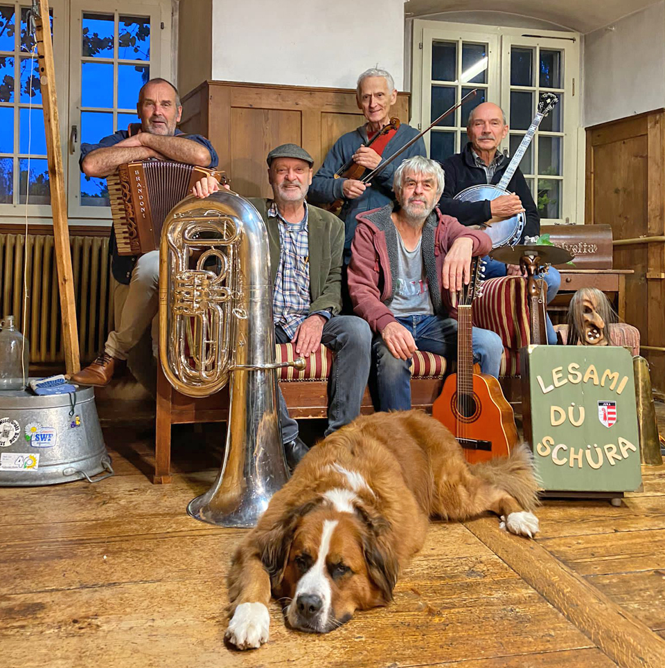 Häxeschiit, Mugiige, Banjos, Nasenflöte, Cajon, Ukudrehle,